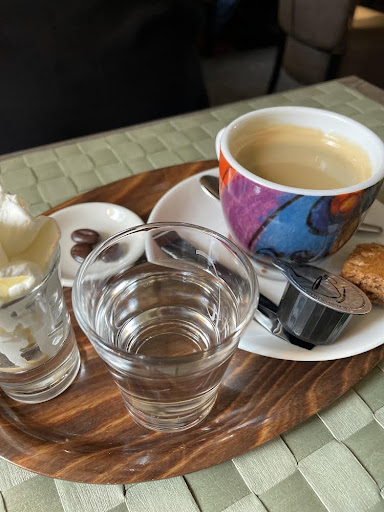 Read moreErg gezellige lunchroom met zeer vriendelijke eigenaresse en personeel. Je kan hier genieten van een heerlijke cappuccino, die standaard wordt geserveerd met een een glaasje water, borrelglaasje met slagroom met likeur en chocolade koffieboontjes. Ze hebben een kleine kaart, waarvan “het twaalf uurtje” mijn favoriet is (zie foto). Zeker de moeite waard voor een bezoek en de...
