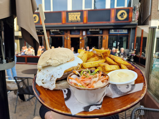 Read moreHier een Angus burger gegeten. Wat een verrassing! Je weet nooit of t wat is, moeilijk te beoordelen van een foto op het menu. Maar dit is een uitstekende heerlijke burger van goed vlees geen premade patty. Alles is vers en homemade. De frites, en ook het verrassend lekkere koolslaatje, ook op de burger zitten heerlijke toppings. Bij de frites goede Zaanse mayonaise, bravo want fritessaus is toch vreselijk. Moest om peper en zout vragen dit stond niet op tafel. De bediening was zeker correct en het eten kwam snel en het zat sfeervol op het pleintje. Al met al een prima ervaring hier ga zo door met die bock burgers daar kom ik voor terug. Nou hebben ze recent het koolslaatje veranderd. Ben geen fan van die zoete rozijntjes, eerder smaakte het...