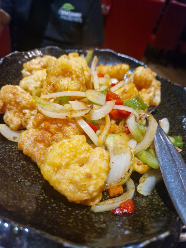 Het eten was heerlijk!! De courgette en champignons waren perfect gaar met goede bite maar ook goede smaak. De saus die erbij zat was heerlijk. De gefrituurde dingen waren wat olieerig en ze waren 1 gerechtje vergeten maar dat kwam onmiddellijk goed toen we het aangaven. Het all you can eat systeem werkt goed. Het is fijn dat je lekker kan blijven zitten en iedere keer 2 gerechtjes pp kan bestellen. Er waren goede vegetarische opties, maar die waren wel een stuk kleiner dan de vlees porties (als in, je krijgt minder groenten dan dat je vlees krijgt). Dat is wat vreemd, want vlees is volgensmij vullender. Zeker een aanrader, al is het alleen maar voor de champignons in die saus 🤤