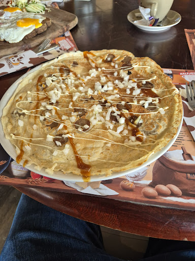 Decided to go for Krimpen, instead of the usual good place at Ridderkerk. The reason behind this was the new play area they have build in Krimpen. With a group of four people, the waiter was apparently not surprised only 3 pancakes were ordered (heard 1 instead of 2x the one and was not savvy to the oddnes). Discussed with the staff that we had a discount voucher for a free pancake due to a birthday, but in the end, this was not discounted. As the restaurant filled up (still well under capacity) the level of service quickly diminished. Next time we will be going out to Ridderkerk again... a petting zoo is not that much of a downgrade to the play area.