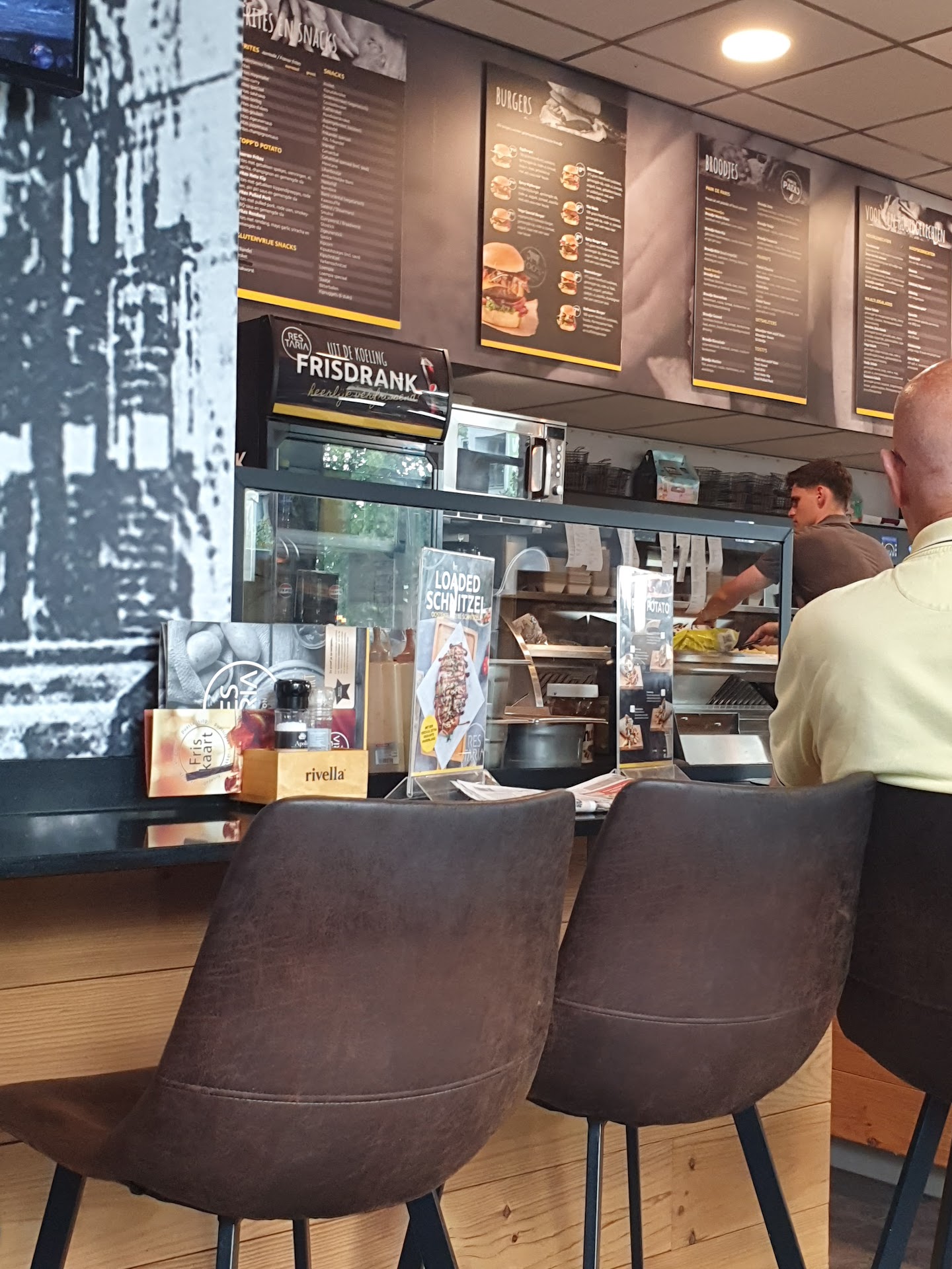Read moreNa telefonische bestelling waarin ons werd gezegd dat bestelling over 20 minuten klaar zou staan, kwamen we aan bij een enorme rij wachtenden voor ons. Manager snauwde ons af met: "we komen vanzelf bij u". Een bizar schouwspel ontvouwde zich voor ons terwijl we wachtte. Er werd voortdurend gevit op het personeel (dat jong en onervaren is maar echt hun best doet). De scene leek haast een HR-trainingsvideo van hoe je géén leiding moet geven; ik had medelijden met het personeel dat onder deze vrouw moet werken. Klanten gingen stuk voor stuk boos weg, maar nergens werden excuses gemaakt voor het wachten. Uiteindelijk hebben we een uur -een UUR!- zitten wachten op onze bestelling. Er kon vervolgens enkel een sarcastisch "bedankt voor uw geduld" met een doorrookte stem vanaf. Geen compensatie, geen excuses -en daar zou ik NIET zelf om hoeven vragen! Bovendien stond de friet inmiddels zo lang op de toonbank dat deze lauw was. Daarnaast twijfel ik eraan of de burger vegetarisch was (de enige vega optie btw), zo'n last en nare dromen heb ik ervan gehad (vegatariers die weer eens per ongeluk vlees eten weten precies wat ik bedoel). Geloof reacties van dit bedrijf in de reviws niet: van 'we zorgen altijd voor een oplossing' is geen - enkele- sprake. Tip aan allen: vermijd deze tent en rij even door naar de...