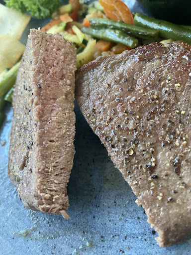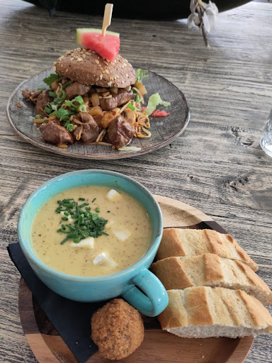Vriendelijk personeel. Mooi ingericht en met veel beweegruimte rond de tafels (erg handig met kids). Leuke bak vol speelgoed waarmee de kinderen zich konden vermaken. Eten was goed maar niet bijzonder. Kipsaté was mals en goed gegaard, saus vrij alledaags. De black angus was helaas te lang gegaard. Medium besteld en was nagenoeg ‘well done’. Bediening was attent en wilde deze wel retourneren, hiervoor bedankt omdat ik met de rest vh gezin de maaltijd wilde voortzetten. Voor de mensen die het verschil kennen en snappen: er staat mayo, maar je...
