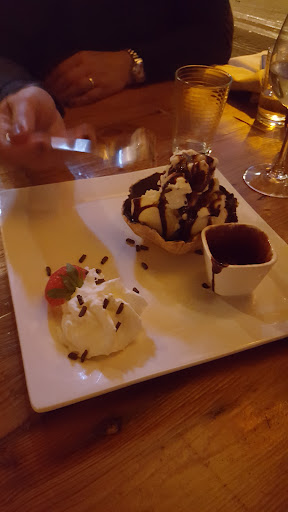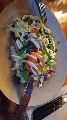 Read moreWe kwamen aan in de hal van het restaurant en er kwam ons een behoorlijke putlucht tegemoet. Waarschijnlijk iets met schimmel.of riolering? We werden niet opgemerkt bij binnenkomst dus we stonden wat in het luchtledige te kijken. Uiteindelijk zag de dame ons, halve restaurant leeg. Ze dirigeerde ons naar het meest ongezellige tafeltje naast een dichtgemaakt deur, vlakbij ingang van de keuken. Terwijl ik bij reservering dat nou juist had aangegeven dat ik dat niet wilde. Wel raar want er waren genoeg gezellige tafels vrij. Ik ging ervanuit dat die gereserveerd waren, maar dat bleek niet het geval. Best raar. Ik kreeg ook nog een wiebelstoel. Dan hadden ze ons een betere tafel kunnen geven. De dame die ons bediende leek hierdoor gepikeerd. Affijn. Ik vroeg wat voor bier ze uit de tap hadden, ze zei; ipa van brouwerij t ij. Vervolgens kregen we gewoon een flesje. Best gek. Het eten was prima. Na ons hoofdgerecht duurde het heel lang voordat de dames ons opmerkten, terwijl er maar 4 tafels bezet waren. Ze stonden te keuvelen achter de toog. Ik keek ze af en toe aan, maar geen response. Het was leuk voor 1 keer, maar het smaakte...