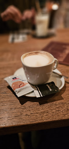 Lets get to food, coffees (cappuccinos) were disappointing as no hearth or other shape was made on the top of cup plus the top layer of froth was really thick, different than what we are used to in this sort of restaurants. That coffe costed one star to muller&Co. But the fries and...