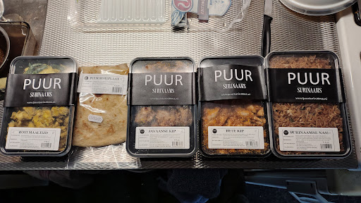 Read moreVandaag voor het eerst een Roti kip kerrie filet afgehaald bij PUUR Surinaams voor EUR 13 (inclusief rotiplaat en kerrie ei). Kreeg EUR 0,50 korting, omdat ik het koud wilde afhalen. Tegenwoordig moet je bijna overal 2 euro extra betalen voor het eitje, bij PUUR zit het al bij de maaltijd inbegrepen. En deze is niet alleen gekookt (zoals bij vele toko’s) maar ook lekker in de kerrie bereid! De rotiplaat smaakt precies zoals het hoort! Ik dacht nog dat het een “aangepaste Surinamer” was in het dorp, maar gelukkig is dit niet het geval. Een authentiek tentje met mega vriendelijk personeel. Ga zeker weer terug voor de roti en dan zal ik ook de verse bara proberen. Kijk er nu...