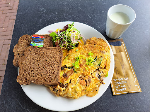 Read moreIk kwam hier toevallig langs met trek en had zin in een omelet. Even naar binnen. Geen probleem, ze hadden een boeren-omelet. Het eten en drinken was echt in no time geserveerd (ok, het was ook nog niet heel druk) en de omelet smaakte me prima! Nog nooit zoveel groente aangetroffen in een omelet.