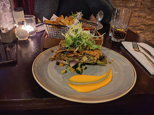 Read moreCozy and welcoming restaurant in the downtown area. With yummy and creative dishes: a wide selection of vegetarian and vegan options and generous portions. We both took the 3-course menu but neither of us had much room left for dessert. We can recommend everything we ordered: the vegan mustard soup, vegan vegetable stew, vegan vitello tonnato and the catch of the day (salmon steak with vegetables) plus a heaping helping of French fries. The vegan chocolate mousse was also a winner. Who needs animal products when there are so many great vegan options? Please consider opening a restaurant in other areas of the Netherlands...