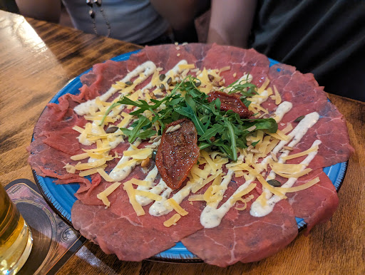 Read moreHet eten was goed, maar ook weer niet super bijzonder. Bij een biefstuk moet je friet apart bijbestellen... Op de website staat dat er 30 bieren van de tap zijn. Op de menukaart staan er een stuk of 5 en verder veel bieren op de fles. In eerste instantie dacht ik dat ik het niet goed gelezen had op hun website, maar na controle staat er toch echt 30 bieren van de tap. De hele sfeer is niet prettig en de medewerkers zijn niet echt gastvrij. Komt amateuristisch over. Serveerster keek ons aan met een gezicht zo van "ik ben blij als deze avond voorbij is". Toen we ons hoofdgerecht opgegeten hadden kwam er een man naar ons toe met zijn handen in zijn broekzakken. Hij vroeg of alles naar wens was. Ik heb hem toen gevraagd wie hij is. Hij noemde geen naam maar vertelde dat hij de eigenaar en kok is. Vervolgens ontvingen wij de menukaart opnieuw voor een eventueel dessert. Maar toen zag ik ineens een hele opsomming van "de huisregels van dit restaurant". Wij moesten hier ontzettend om lachen maar we vonden het ook werkelijk smakeloos. Het plaatje was nu compleet. Als je hier wilt eten wordt je onderworpen aan regels die kant nog wal raken. We lieten het dessert voor wat het was, daar hadden we geen zin meer in. Bij vertrek was er een mevrouw (ik denk ook eigenaar) die eerder een telefoongesprek voerde met zeer luide stem en voor iedereen hoorbaar. Ze vroeg ons ook of alles naar wens was. Ik heb gezegd op het eten heb ik niets aan te merken maar wel over de huisregels. En dat ik zoiets nog nooit meegemaakt heb. Direct ging deze mevrouw in de verdediging. Er kwamen volgens haar regelmatig groepen die alles van de tafels mee naar huis nemen.....en dat het steeds erger wordt met klanten want die worden steeds onfatsoenlijker....We zijn maar vertrokken want ik had geen zin in deze discussie. Ik heb vandaag eens naar de reviews gekeken en ben echt geschrokken. Eigenaar reageert op de reviews op een manier waar de honden geen brood van lusten. Wellicht krijg ik ook zo'n reactie. Misschien nog wat tips: stel je wat professioneler op en verwijder die...