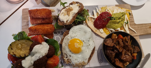 Being Dutch, everything was drowned in mayonnaise (falafel salad, quesadillas... the shrimp were merely laying in a bed of mayonnaise). If you also love unexpected mayonnaise in dishes, this is your place.