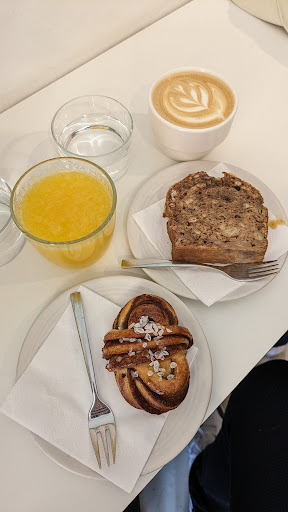 Read moreFelt like sharing my experience since I saw so many good reviews. I was sitting there with my friend we ordered our drinks and everything was fine. We got asked if we wanted something again so I ordered a matcha latte which didn't come so they ended up asking me if I still wanted it. I declined and asked for water. The waiter (an older man) said, in a condescending tone, "You have to pay for water". I told him it was no problem so we ordered that and 2 cinnamon rolls. The cinnamon rolls were mediocre at best. Went inside to ask for some forks since they were very sticky (I asked this in Dutch. I speak Dutch I am a native speaker, and since my friend doesn't we ordered in English as well). We got our stuff and got my friend was not even finished eating her pastry when the same guy came again asking if we were gonna order anything because we can't sit here all day. I understand that you can't sit at a café not ordering anything for a long time but we ordered multiple things and weren't even finished when they asked us to leave. When checking out I spoke in Dutch as before but the man kept speaking English to me. It was pretty weird. Nice location and all but being asked to leave when you aren't even finished isn't very welcoming and does not encourage customers...