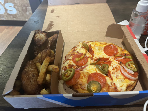 I was hungry and decided to spontaneously stop by a place for lunch while walking down the street. It was my first time visiting a Domino's in the Netherlands, and overall, I was satisfied. Most importantly, the electronic kiosk made ordering very simple and easy, which I liked, and it was great for choosing my favorite menu items. They offered a customized box for one person that included a small pizza and wings, which seemed more customizable than Domino's in other countries. Although the store wasn't large, there were well-arranged tables where you could sit and eat. The prices were reasonable compared to other restaurants, making it a good option for a quick meal.