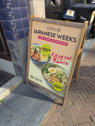 Ik denk dat ik mazzel heb gehad, tenminste wanneer ik sommige reviews hieronder lees over ´smakeloos en zelfs stinkend (Shevchenko) eten´... Omdat ik gek op ´Ramen´ ben en ze bij Eazie (wel een beetje een popi-jopi keten hoor, en strak ´voorgezeten´ door fantasieloze investeerders, lees ´de rijken´) momenteel ´de Japanse weken´ hebben, wat trouwens in de praktijk alleen een extra aanschaf van ´bouillon, miso en Teriyaki´ betreft, besloot ik het erop te wagen.Enkele zaken verder zit mijn vertrouwde Chinees die goddank nu eindelijk ook een Wok-corner is begonnen, dus deze keer kneep ik gewoon wat eerder in mijn remmen. Het aantal groentes dat staat opgesteld bij ´de salade bar´ is nogal fantasieloos (sommige bakjes zijn zelfs tweemaal met hetzelfde gevuld...) maar goed, dat krijg je nu eenmaal bij ketens, daar gaat ´het stroomlijnen´ van de aanvoer van voedsel tenslotte boven alles. Waarom ik uiteindelijk geen volle 5 sterren gaf? Wel dat is vanwege de hoeveelheid van slechts 900 gram die je toebedeeld wordt, eigenlijk is dat namelijk echt nét te weinig voor ´een Europese buik´. Je denkt dan dus voordelig uit te zijn maar hebt de rest van de avond toch het gevoel dat je helemaal niet, of dan tenminste zeker niet genoeg..., gegeten hebt. Ik begrijp daarom ook echt niet dat er maar 1 portiegrootte verkocht wordt, en dat daar verder dus geen enkele keuze in is. Nu moet ik immers steeds bedelen om tenminste een ruime portie en zo wordt een herhaling van een bezoek voor de gast tenslotte ook niet eenvoudiger. Commercieel gezien dus niet bijzonder slim. Een zeer alerte en vriendelijk ogende eigenaar heeft deze franchise wel,...