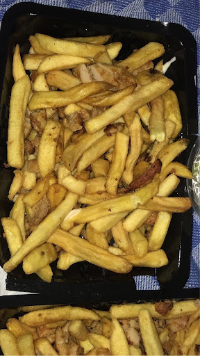 En dan de raspatat hete kip - wat een genot! De frietjes waren goudbruin en heerlijk knapperig, precies zoals ze horen. De hete kip topping was een ware smaaksensatie; pittig, sappig en vol van smaak. Het was precies de juiste hoeveelheid pit om je smaakpapillen te prikkelen zonder te overheersen.