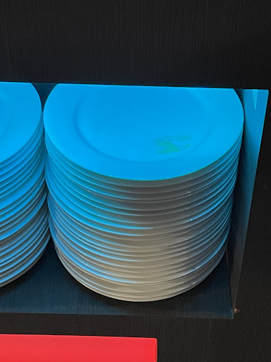 The ambient is modern industrial, flooring is cheap and risk of tripping around the buffet.