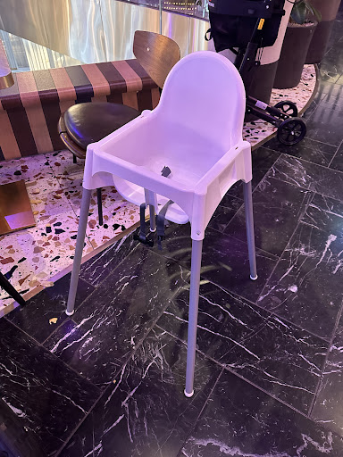 The worker was insistent on taking the chair away from our child, even though he was happily eating. We had no choice but to hold him on our laps for the rest of the meal. The neighboring table kindly gave us a chair for our child to sit on, which was much appreciated.