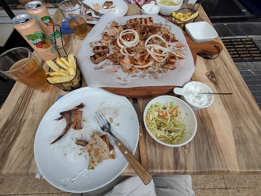 Read moreLekkerland Gyros has a nice variety of tasty greek food, much more than just gyros. Especially interesting are the menus for 2 persons. There are three versions of this, each with a different combination of meats. These platters are huge, here is a picture of ours after we had eaten almost half of it. So, even though they say "2 persons" they can easily feed 3 or even 4 people. The two of us ate until we were stuffed and took home enough leftovers for a meal the next day :) These also include frites, salad, pita bread, tzatziki, and beverages, all for a very reasonable price. For larger groups there is also a 'menu for 4 persons'. I can't even imagine how big that one is...! Lekkerland also has a good range of starters, salads, desserts, a children's menu, and of course gyro/pita sandwiches, which they can make with chicken, zucchini balls, cheese, or greek sausage as well as gyro meat. They are kind of tucked away in a corner but are definitely worth...