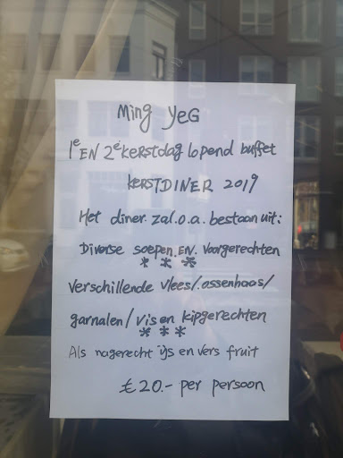 Read moreHelaas is ons vast chinesche restaurant al weer een tijdje weg uit leidschenveen en zijn we nu voor het eerst bij ming-yeg geweest. Besteld via website en stond keurig klaar op tijd. Aardige mevrouw die ondanks een behoorlijke bestelling geen kroepoek er bij gaf. Eten zelf waren we zeker niet van onder de indruk. Ayam pangang was de slechtste die ik heb gehad, waterig meer saus en soppig vlees. Sate droog en hard en waterige pindasaus. Tjap tjoy was vers en lekker. Kip met champignons helaas geen verse champignons en ook waterig. Iets pittige kip met ketjap was wel oke evenals de foe yong hai. Overal vonden wij de smaak niet chinees, meer Nederlands. Geen herhaal gevaar voor ons, gaan zoeken naar ander...
