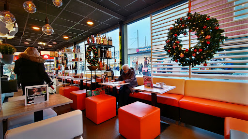 A classy, modern looking coffee and ice-cream bar with excellent service, wide range off coffee choices with cheap and varied non dairy coffee selection (+ 0,30 cent).