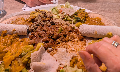 Upon entering the restaurant, I was warmly welcomed. I was patiently guided through the menu, and I’m very grateful I followed the recommendation, as it was my first time trying Eritrean or Ethiopian cuisine. The honey wine is highly recommended. The mixed platter also tasted flawless. I would have loved to try a dessert, but after the appetizer and the generous main course, there was unfortunately no room left.