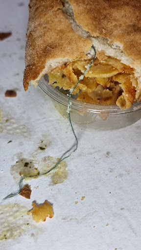 DUS Mensen dit is echt te g00r voor woorden dat dit in je eten zit!!!!! Daar geen excuus of watdanook in tegemoet bied. Eten zal ik daar never ever nooit meer eten Gatverdamme!!!! En dan nog nieteens gesproken over de kleurrijke persoonlijkheid van deze eigenaar waar wiens vertrouwen in ligt jouw eten te bereiden.