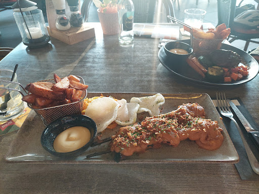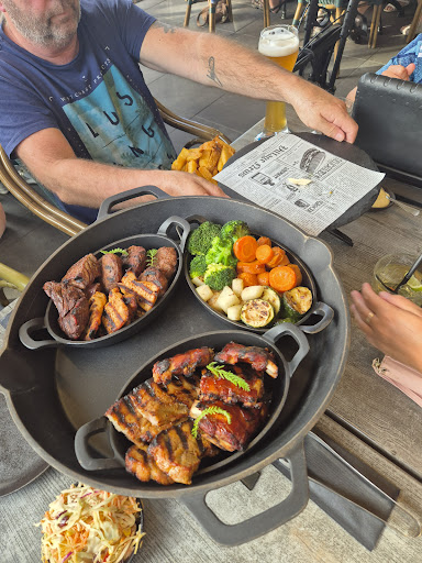 Read moreLeuke knusse locatie, landelijk gelegen aan buitengrens van dorp. Mooie mix van oud-Limburgse gezelligheid met moderne stijl van serveren. Mooie vorm degelijke kwaliteit en voorverwarmde borden. Aspergesoep was verrukkelijk. Sharing diner wordt geserveerd op een toren van zware gietijzeren potten en pannen. Hitte blijft lang in het gerecht, en mooie opmaak met handgesneden patat met schil en diverse aardappelproducten. Diverse soorten vlees van goede kwaliteit. De bavette zou ik liever vervangen door een bief of peppersteak vanwege de fijnere textuur. De grove spier in bavette vloekt enigzins met de rest van het mooie malse vlees en zalm in de rest van de toren. Hoeveelheid is ruim voldoende en wij als goede eters kregen het amper op. Nagerecht is prima. Een dikke pluim voor het personeel. Netjes in bedrijfskleding en erg vriendelijk en jeugdig. Wij komen...