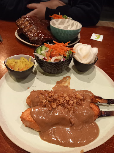 De menukaart is klein, maar gevarieerd. Wij hadden de tomaten-paprika soep en broodplankje als voorgerecht, en de kip saté en spareribs als hoofdgerecht. Porties waren genereus maar niet te veel. Er is geen dessert kaart. Wij liepen verzadigd de deur uit.