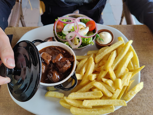 Read moreTijdens onze vakantie dit restaurant bezocht. We kwamen langs, zag er leuk uit. We werden meteen, toen we gingen zitten, gevraagd of we graag de kaart wilden. Drinken besteld. Dit kwam ook vrij snel maar daarna kwam er gewoon niemand. Mensen die na ons het terras op kwamen werden eerder geholpen dan wij. We besloten eigenlijk net om te betalen en dan maar ergens anders te gaan eten toen de jongeman van de bediening eindelijk kwam. Toch maar eten besteld... We hebben tenslotte vakantie, laat maar gaan.. blijkbaar konden ze de, vrij normale drukte, niet goed handelen want de, wat wij dachten de eigenaresse, liep ook mee te bedienen. Het eten wat kwam was matig. Mijn man had 2 kroketten met brood..twee droge sneetjes tijgerbrood en twee kroketten en dat kostte €12,50 Ikzelf had een tosti ham kaas van €8,00 met datzelfde brood. Veel te duur. Kwaliteit prijsverhouding is niet goed. Voor de drankjes werden normale prijzen gevraagd. Het personeel of in ieder geval de mensen daar waren niet erg vriendelijk.. Binnen zag het er vrij netjes uit Toiletten schoon. Ik zou het op basis van de prijs van de maaltijd niet willen aanbevelen. De wachttijd was ook niet erg...