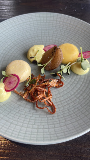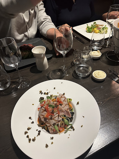 Read moreMijn zus vierde haar zeventigste verjaardag en had hier lang naar uitgekeken. We waren met een gezelschap van zes personen uit alle windstreken van het land. Tja, wat zal ik zeggen? We werden hartelijk ontvangen. De inrichting en decoratie van het restaurant was duidelijk met zorg samengesteld. Het eten was prima en prachtig opgemaakte borden. Enerzijds verfijnde gerechten maar anderzijds verwacht ik dan toch wat anders dan Belgische frieten met mayo op tafel in een luxe restaurant met de allure van de Franse keuken. De bediening was traag, te traag. Het restaurant was nog niet voor de helft gevuld, maar het duurde minstens een uur voordat de eerste gang op tafel kwam. Ook duurde het veel te lang voordat de drankjes er waren. Vervolgens waren bij het uitserveren van de hoofdgerechten drie van de zes maaltijden verkeerd. “Foutje van de keuken”, maar dat werd weinig charmant opgelost. Het bleef bij een “sorry” en de verkeerde maaltijden verdwenen terug naar de keuken in afwachting van de juiste gerechten. De helft van het gezelschap kon gaan eten, maar de andere helft niet. Toen de juiste maaltijden uiteindelijk werden opgediend, waren de frieten koud, toch werden er geen nieuwe gebracht voor de tweede ronde! Hier had de chef meer aandacht aan kunnen en in mijn optiek aan moeten besteden. Hoe zit het met de pricing? Nou, ik vind € 8,00 voor een glaasje jenever exorbitant duur. Kortom, entourage en de kwaliteit van het eten waren in orde, ook de bediening was vriendelijk, edoch er zijn nog wel wat leerpuntjes. Een kwaliteitsrestaurant is meer dan dit! Tot een volgende keer? Ik...