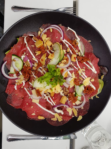 Read moreHet eten was lekker. Op het dessert moesten we wel echt lang wachten en er ontbrak bij een portie het ijs. Dat ijs was overigens walnoot ijs i.p.v. het toegezegde kaneel ijs, ook jammer. Dat werd later gebracht. Het sanitair is beneden alle peil, het stinkt, de wc-bril zat los (echt los, ik viel bijna van het toilet -en dat was bekend bij personeel die er heel laconiek op reageerde) het ziet er erg smoezelig uit. Als je in het restaurant rondkijkt zie je ook opvallende dingen: lamp die het niet doet, rare combinaties van accessoires, tafels staan zo dicht op elkaar dat 2 keer mensen problemen hadden met het kunnen plaatsnemen aan de tafel, omdat de stoelen elkaar wegdrukte met de ruggen. Gaf 1 keer ook wat gedoe. Onze jassen werden aangenomen, ze waren heel nat (door de regen gekomen op de fiets) waren zo tegen de anderen gehangen. Toe we ze terug kregen, was mijn jas zelfs van binnen nat en de jassen van de andere twee van ons gezelschap waren ook helemaal nat, terwijl zij droog met de auto waren aangekomen. Bediening was zeer matig. Het eten was heerlijk, dat maakt de rest van het geheel nog goed. Maar ik kan het geheel nou geen...