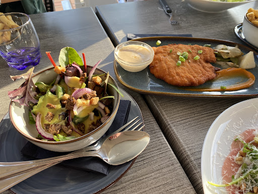 The food was incredible! The carpaccio starter blew our minds (well, our tastebuds!) and the Cesar salad is loaded and unique. My kids loved their burgers—loaded and savory. Our server was very sweet, too. The patio setting overlooking the camp and the river is ideal. Also, we commend the manager for doing right by us; our server’s shift was over and in the hand off our food order was not out thru, so our wait was very long, but the manage gave us drinks on the house and checked in frequently. And the food was so good, we forgot it...