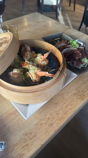 The shrimp Dim sum appetizer was served with a chili sauce that was so hot that you could not taste the rest of the Dim Sum dish any more (why serve it with such a hot sauce in the first place??).