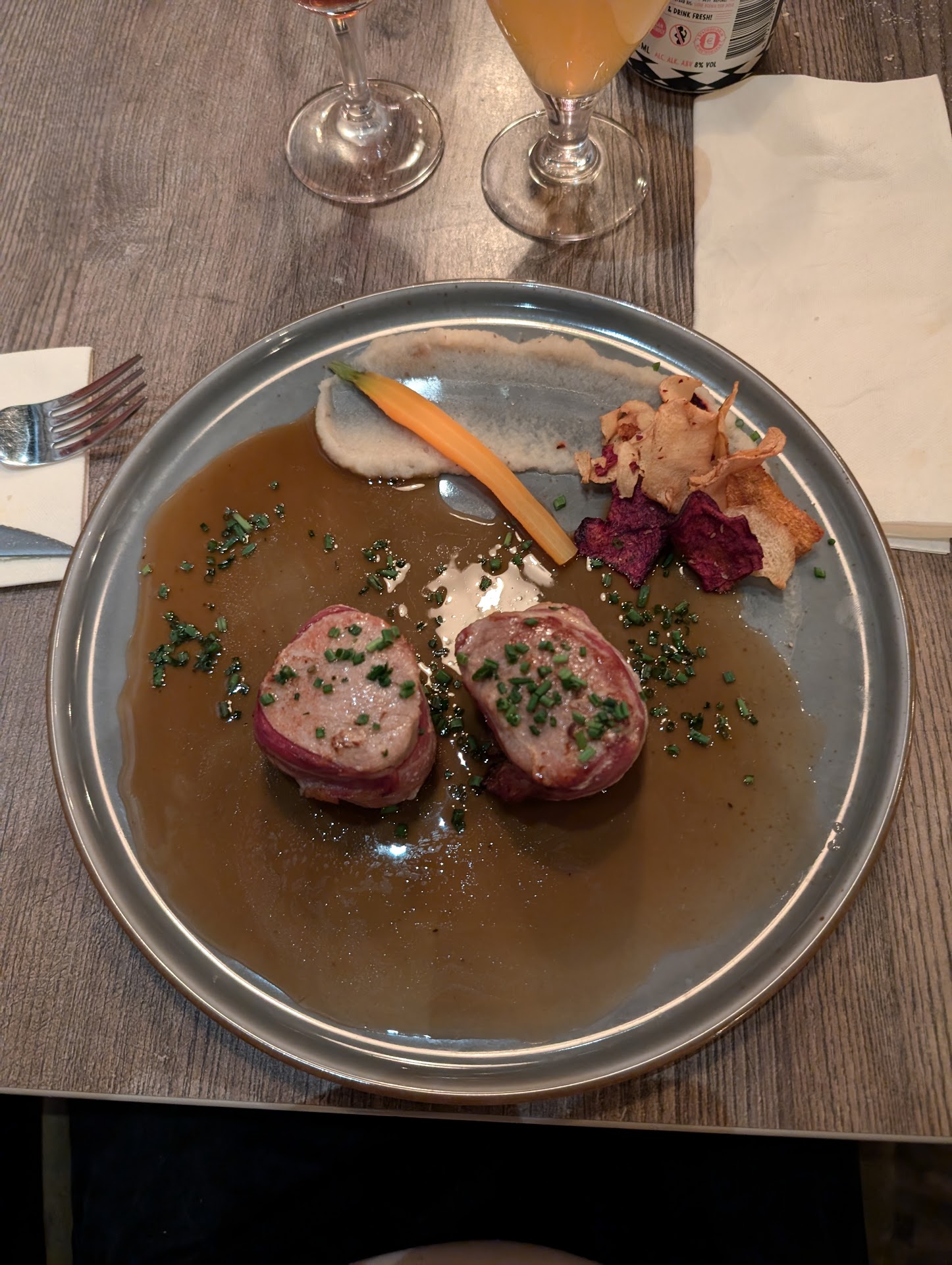 The food was beautifully presented and full of flavour. I had the pork dish, my wife had the swordfish, and the kids enjoyed the classic Dutch sausage and chips â all absolutely delicious.