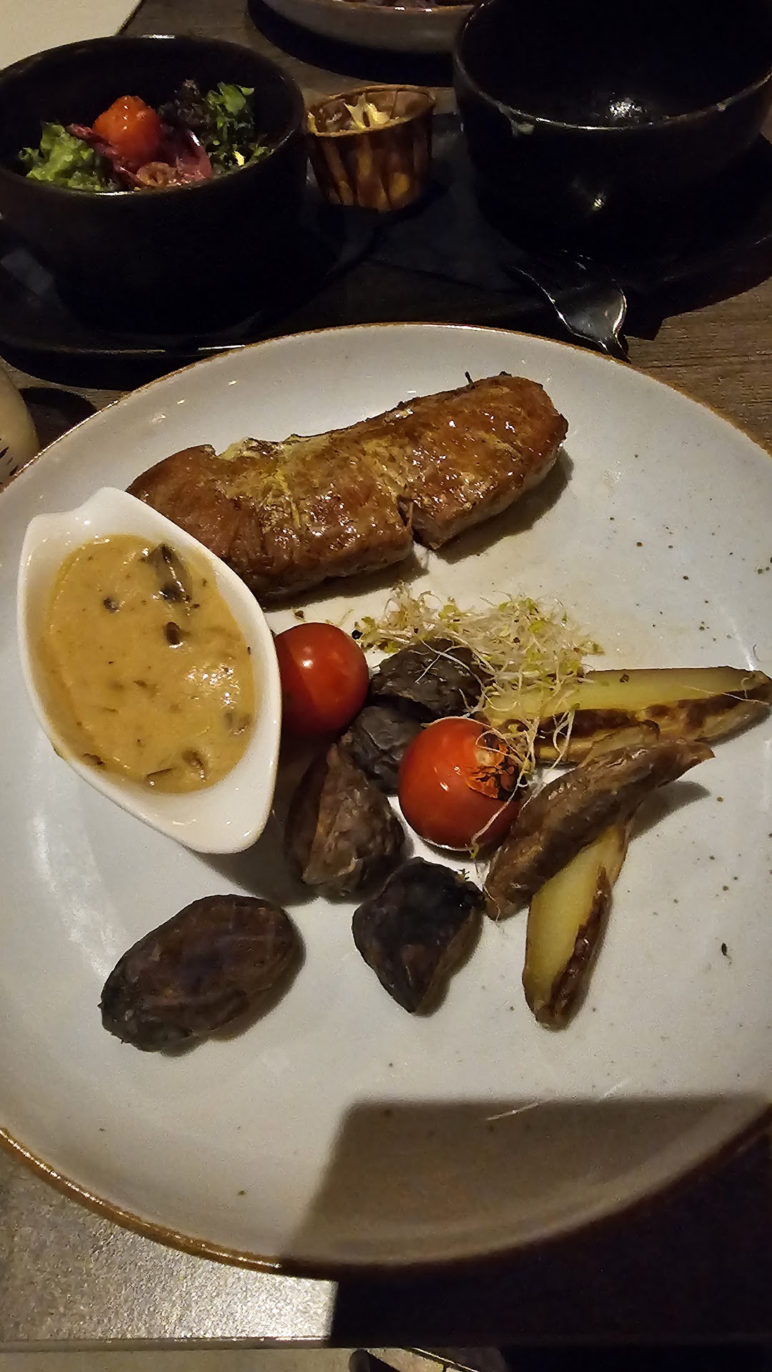 The restaurant is very fancy but from my experience the service and the food was terrible and it's not a cheap restaurant so I was expecting much more for the food and for some quality service. Since the moment that we called per phone and asked if we should take food for our baby or if they have anything without salt or if we should take from our own and when we arrive it was a big mess because there was nothing without salt (on the phone we were been told that they could arrange some soup), so employers came to our table 3 times and on the end the chef needed to came to the table because of this miss comunication with the team however, it was very nice of him that he offered to do some puree with vegetables that they had (which my daughter didn't liked but its was very nice from him). We order entrecote medium rare but the meat was not sealed, we asked to take it back and to have another one because it also needed to be a bit more rare although the meat came the same way, as you can see on the image, did not have much flavor, still not sealed on outside, and was dry but we were so hungry and tired of that bad service that we ate that. For a 60€ meat I could do it better at home and...