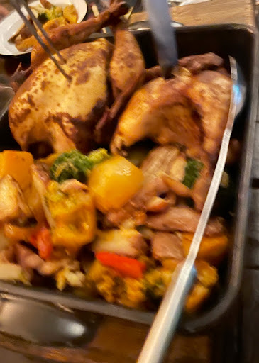 Secondly, the food was tasteless and not generous at all. There was a bit of bread on the table when you arrive. Then there is a shared appetizer plate with some tiny pickles & meat slices (3 slices per person). For the main there is a one pan meal, with 2 small chickens and a few over cooked vegetables for 6 adults and 2 children. Not sure why they don’t serve fries like every other Dutch restaurant, would have helped tremendously. Dessert was just a basic no thrills apple tart.