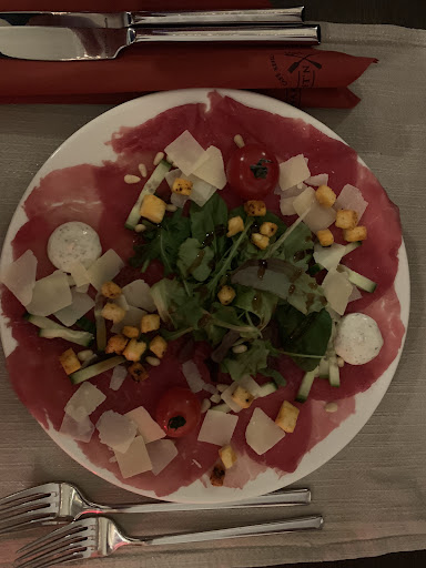 Voorgerecht was goed, ( extra brood bij de soep besteld ) maar het hoofd gerecht was helaas slecht, varkenshaas had weinig smaak en was waterig. De roerbakgroenten die er bij hoorde te zitten kon ik niet zien ? Ik heb gevraagd waar de groenten waren. Vroeg de bediening wilde u dat dan ? Ik heb gezegd ja. O dat zit al u bord zei de mevrouw. Ik heb nog nooit zo hard gelachen. De sla die we er bij kregen smaakte naar Dreft afwasmiddel. Toetje was oke. Bediening had iets beter om moeten gaan tegen kritiek. Want er werdt gevraagd of alles naar wens was. Ik heb me eerlijke mening gegeven. En ze lieten ons zitten, waardoor wij geen drinken meer konden bestellen. Ook werdt ons niks meer gevraagd maar de peper en zout molen werden wel zonder pardon van tafel gehaald ?