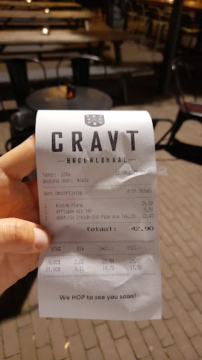 Read moreOndanks dat Cravt Uden in sommelierse biersferen grandioos ophemelt, moet er melding gemaakt worden van het feit dat wij een uitzonderlijk perfect bediende avond hebben beleefd met een service van één ober in het bijzonder. Die ober heeft zijn naam bekend gemaakt als Thijn en die blijft ons nog jaren bij in het innerlijk geheugen. Het mag als ongekend beschouwd worden hoe deze persoon het bier aan de man brengt en zijn charmes in de strijd gooit om ons te overtuigen van de specifieke brouwprocessen of smaakaaneenrijgingen. Daarbij optellende dat de sfeer ultiem was, moet toch wel geconcludeerd worden dat Cravt een hoogtepunt vormt in het Udense...