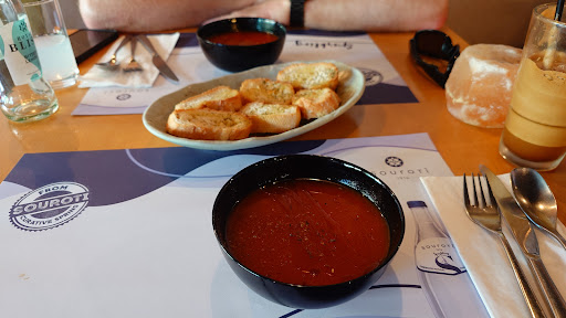 Read moreWe hadden een social deal geboekt!! Het was echt veel en heerlijk..5 keer iets gebracht. De soep was heerlijk met vette stokbrood sneetjes. Hierop was olijfolie en kruiden gestrooid. Daarna kwam er een warm gevuld broodje met koud sausje. Het was door ons allemaal opgegeten. Toen werd de hoofdmaaltijd gebracht. 2 grote spiesen kip en vlees...er lag sla en frites op het bord. Heerlijk maar veel. We hebben genoeg er bij gedronken. Walther Grieks bier en ik cola zero. Ik had wel zin in 1 wijntje...maar ik moest nog naar huis rijden. De muziek die gedraaid werd was Grieks. Ik kreeg opeens de drang om met de borden te gaan gooien...maar dan zou de vloer echt goor worden. Dus het eten allemaal naar binnen werken...pffff ik had echt genoeg gehad toen we naar huis gingen. Kalimera!!! Tot de volgende keer. Groeten van ons. Enne werk ze nog en veel succes met...