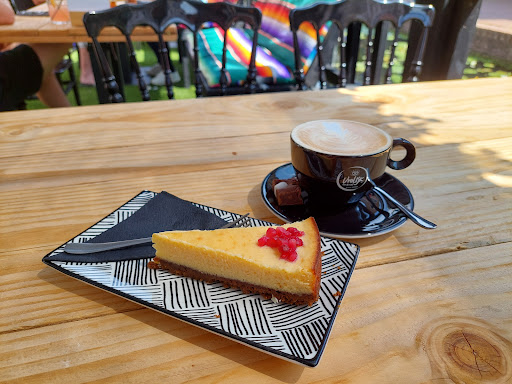 Lovely bar on a quiet street with friendly staff. There's a very cozy outdoor terrace set right on the canal, with pleasant shade. The menu is great—tea, coffee, desserts, beer, and snacks, plus a separate lunch menu. The photo only shows half of one menu spread. I had a cappuccino (tasty, and came with a delicious candy) and a lime pie. I haven’t tried the rest, but the dishes at nearby tables looked very appetizing....
