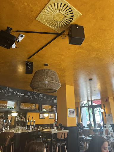 We waren met 9 personen. Er zat erg veel tijd tussen het brengen van het eerste gerecht en het laatste. De (vegetarische) burger met een klein bakje friet kost €22,- dat vind ik erg prijzig. Heel fijn - ze hebben soja- en havermelk. Hier betaal je wel €0,50 extra voor.