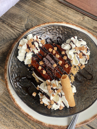 Read moreTerras ziet er erg gezellig uit (erg sfeervol!), maar de hoge krukken waar we op zaten wiebelden wat erg (ik kon er niet relaxed op zitten, bang om om te vallen met kruk en al, maar de rest van het terras was helaas vol). Tafels (de bartafels in ieder geval) waren ook niet heel goed afgewerkt, waardoor ik met wat kleine haakjes op mijn blouseje eindigde. Het uitzicht verder was verder prima, zelfs in de hoek tussen het gedeelte binnen en de minigolfbaan. Minigolf was leuk, maar sommige holes waren wel echt belachelijk moeilijk, zelfs voor volwassenen (bij de ene baan was het leuk en uitdagend, bij de andere ronduit frustrerend). Een enkele keer kwam dit omdat de baan niet helemaal goed onderhouden was (verschoven matten op de baan, gaten in een net waardoor de golfbal onder de baan terecht kwam, of een richeltje waardoor de bal niet over het obstakel kon rollen, maar juist tegen de rand aan bleef rollen en zo soms van de baan af knalde). Misschien wel een idee om bankjes in de grond te zetten, zodat je kunt zitten als de mensen voor je nog niet klaar zijn. De stoeltjes die er namelijk wel waren, stonden niet vast en op een helling, wat ook niet erg veilig voelde. We waren wel een tijdje bezig met de baan. Dat is wel fijn om niet binnen 10 minuten klaar te zijn (we waren geloof ik toch wel een kleine 2 uur bezig met 2 personen), maar als de keuken om 17:00 dichtgaat en je om 14:30 arriveert, dan voel je je wel gehaast/in dubio óf eten óf minigolf (je wilt natuurlijk ook niet om 16:45 nog heel wat bestellen). Door de unieke ligging vond ik het jammer dat we uiteindelijk naar de stad moesten gaan om te dineren. Mooie locatie, leuke activiteit, maar wel wat puntjes op de i die missen voor mij persoonlijk. Ik denk wel dat er veel potentie zit in juist die...