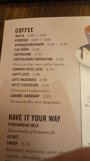 On Sunday, we as a group of 4 Asians visited Coffeelovers Plein 1992 at 11:05 because the one at Bookstore Dominicanen was closed until 12:00. We ordered 2 chai latte, 1 mint + honey tea, and 1 hot chocolate. After 10 mins, we received our drinks.