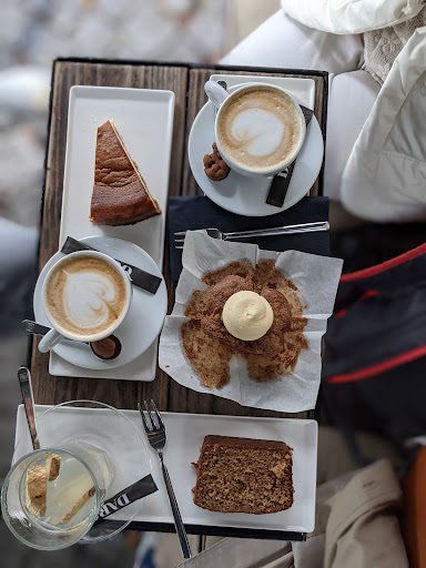 We enjoyed a soy flat white and a normal flat white. The coffee was really good. We had a slice of their banana bread, it was divine.
