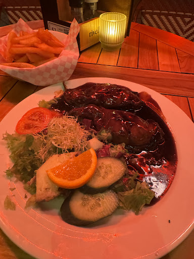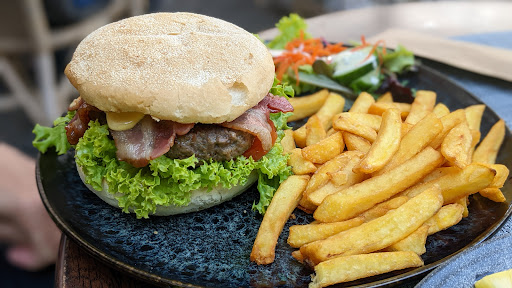 We were on a cycling tour and stopped here for lunch on 30-APR. The staff was very friendly and we had great service. It was a lovely spot to sit and watch all the activity on the square. We shared a giant juicy burger, a waffle with fresh fruit, and a beer. Delicious! You'll be delighted with the fancy stick that holds the burger together. I missed taking a photo before we removed it, so now you'll have to go and see for...