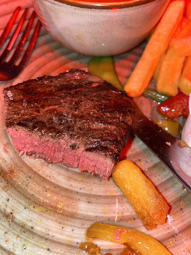 Read moreIk ben uiterst tevreden over het bezoek aan dit restaurant. Ik wilde voor een goedkope prijs uiteten gaan met mijn vriend, via social deal kwamen we dan hier terecht. Voor maar liefst €19,50 (los van drank en extra saus voor bij de friet) kunnen wij hier 3 gangen eten waarbij je normaal uit de menukaart af te lezen meer dan het dubbele voor betaalt. Om te beginnen bij het voorgerecht: Carpaccio was goed in balans en was heerlijk met het stokbrood en de kruidenboter. Hoofdgerecht: biefstuk medium rare met champignonsaus en groentes. Biefstuk was perfect medium en de saus was heerlijk. Niet vergelijkbaar met de champignonnensaus die ik zelf thuis bereid of uit een zakje maak. De rest aan het gerecht was prima Dessert: cheesecake met frambozensaus. Op en op top. Heerlijk smeuïg en lekkere bodem.