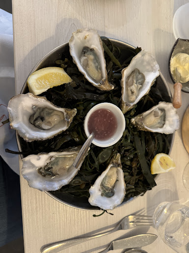 The fish platter and oysters we ate were amazing and a nice wine selection was available to accompany them. We sat outside on the terras and service was excellent.