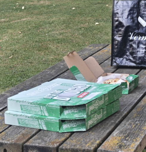 Food: ordered the 4 cheeses, sorry to say honestly the toughest dry pizza i could barely chew, dont know if its this location or the general formula. But not what i remember nyp being like. Could have had authentic pizza on an italians terrace for the price too. Garlic bread sides werent bad.