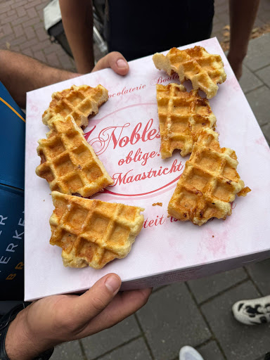 Patisserie Noblesse, Tijdens een bezoek naar Maastricht doorverwezen naar Patisserie Noblesse voor echte Limburgse Vlaai en gebak. Ontvangen door eigenaresse in de winkel met een glimlach en persoonlijk aandacht en belangstelling. Verzekerd van kwaliteit mijn eerste vlaai en Hanekam besteld met de opmerking dat het verrassend lekker zal zijn. Inderdaad overheerlijk en smaakvol vlaai en gebak. De bakker en zijn vrouw zijn Super lief en gastvrij. Hebben mij een extra traktatie gegeven voor onderweg zodat ik zonder trek op mijn bestemming aan zou komen. In de daarop volgende weken wederom twee keer vlaai en gebak gehaald . Ik moet van ver komen Alkmaar - Maastricht is toch 255 kilometer . Toch doe ik dit gemiddeld ééns per maand maar nu altijd met een tussen stop bij Noblesse. De winkel is traditioneel gezellig en klein van formaat en hun brood en banket zijn verrukkelijk. Je kunt gerust stellen met liefde gemaakt. Een aanrader voor wie van kwaliteit en service houdt. Deze vak mensen moeten gekoesterd worden in hun passie en verdienen een dikke pluim ! Dergelijke bakkerijen zijn schaars ! Echt de moeite waard om ruim 500 kilometer voor te rijden.