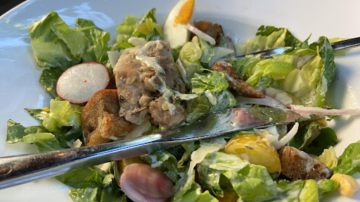 Read moreWe had 2 salads Caesar that normally come with anchovies ( which is not original ingredient) and we requested to keep them off our plates. We received our plates with this piece of dried aged pork thin piece, and by aged I mean old. The chicken in the salad had a pale grey/beige greenish colour that was not fresh, few days old and re warmed for our dish. The old taste was tried to be masked by herbs but they were not doing the trick. Toilet was a mess, kitchen was run by students. Horrible place Would not recommend for anyone, definetly not...