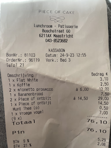 Definitely a place to recommend for anyone who appreciates quality food, a cozy vibe, and good coffee. Whether youâre stopping by for a quick bite or indulging in a long coffee break, Piece of Cake is a spot you wonât...