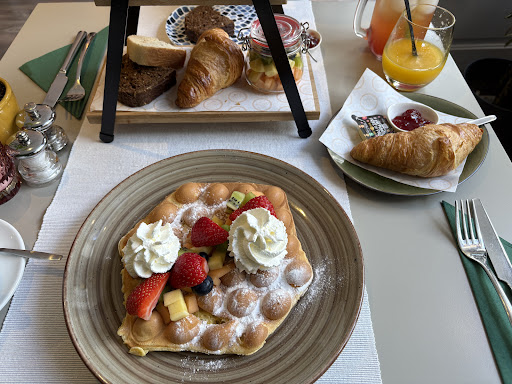 Great coffee, fresh juice, delicious pastries and amazing bread are the highlights from the breakfast menu. We saw people around us ordering bubble waffles as well, so they seem popular.